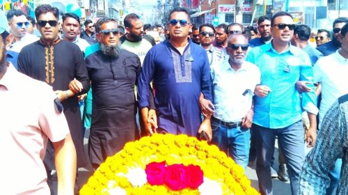 পুষ্পস্তবক অর্পণ করে ভাষা শহীদদের প্রতি শ্রদ্ধা জানান বরিশাল মহানগর যুবদল