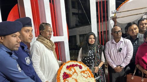 বাকেরগঞ্জে বিনম্র শ্রদ্ধায় অমর ভাষা শহীদদের স্মরণ: পুষ্পস্তবক অর্পণ